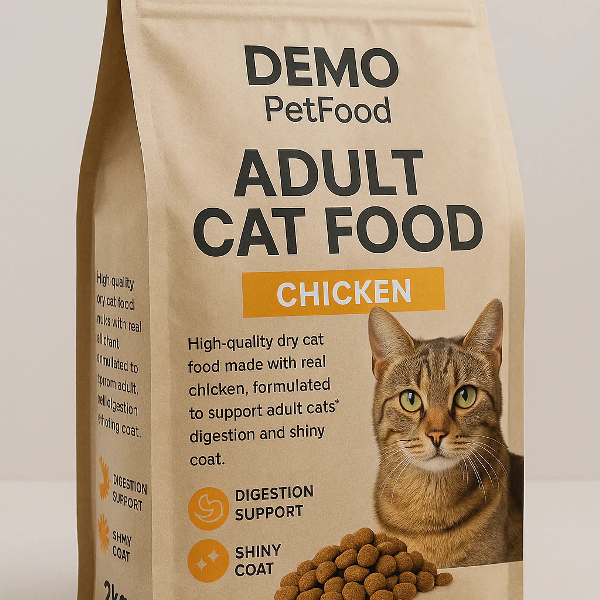 High-quality dry cat food made with real chicken, formulated to support adult cats’ digestion and shiny coat.